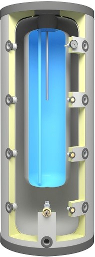 inner tank (enameled) is heated by the water in the external tank and it will function as source for domestic hot water.